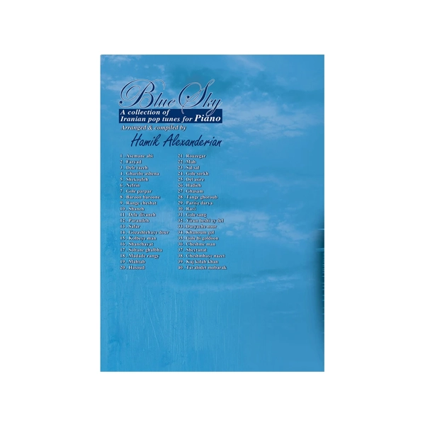کتاب «آسمان آبی» اثر هامیک الکساندریان، یکی از آثار ارزشمند در حوزه تنظیم موسیقی پاپ ایرانی برای پیانو است. این مجموعه با هدف آشنا کردن هنرجویان و نوازندگان با قطعات محبوب و خاطرهانگیز موسیقی پاپ ایران، تنظیم شده و فضایی دلنشین برای تمرین و اجرا فراهم میکند.
